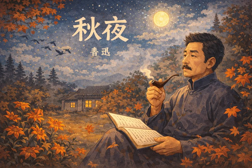 这上面的夜的天空,奇怪而高,我生平没有见过这样的奇怪而高的天空。他仿佛要离开人间而去,使人们仰面不再看见。然而现在却非常之蓝,闪闪地着几十个星星的眼,冷眼。他的口角上现出微笑,似乎自以为大有深意,而将繁霜洒在我的园里的野花草上。